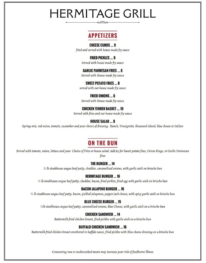 As you explore the menu, the commitment to flavor and presentation becomes clear—a testament to the talented culinary team behind Hermitage Grill. Don’t forget to try their delicious burgers and fried cheese curds during your visit!